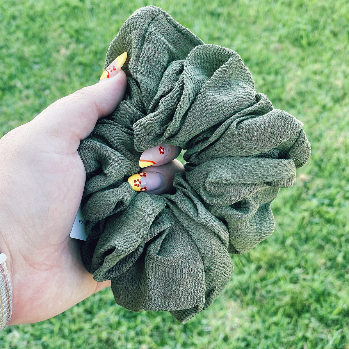 Rock this stunning fern, natural jumbo scrunchie with its unique texture to elevate any look. Ideal for long or thick tresses, but also perfect for a messy bun or casual ponytail. Game on!