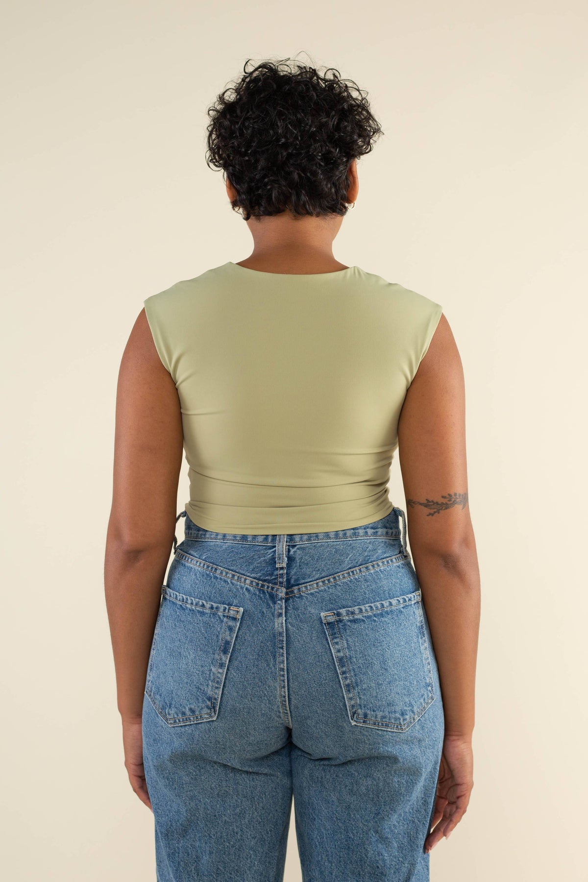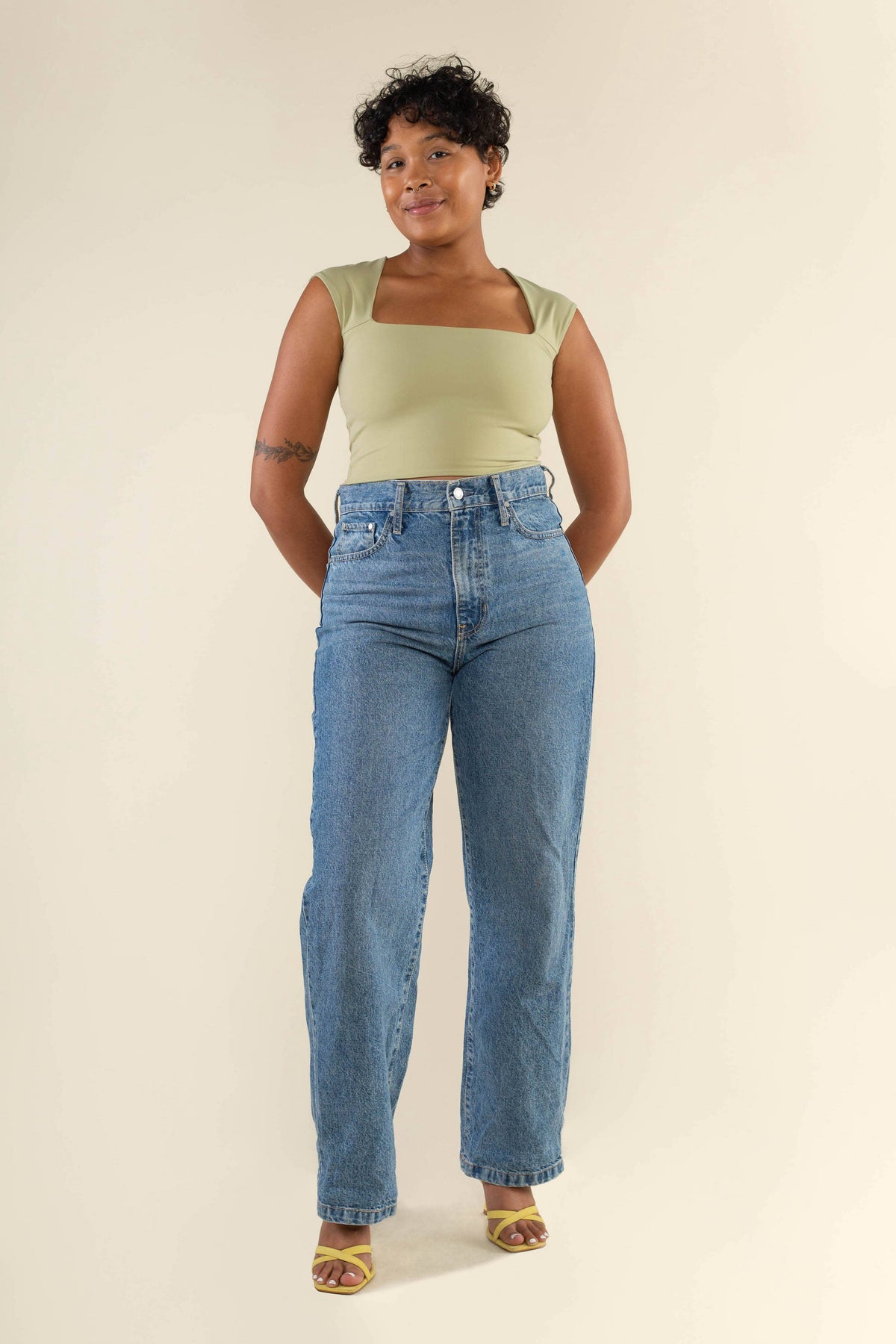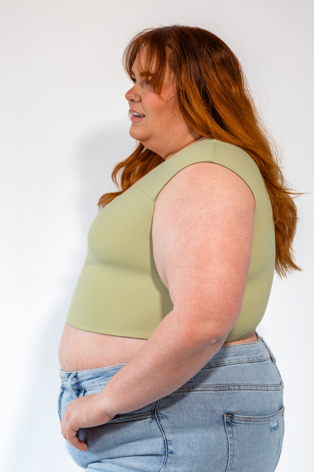 A super cute crop top with a flattering square neckline. It's double layered for added support and a non-see through design (aka no peek-a-boos!). The fabric has a compressive feel and is double brushed (aka crazy soft) for a super flattering fit.