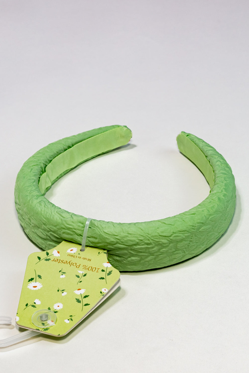 This Sunday State spring vibes headband features matcha green colored jacquard style fabric. It's super light weight and comfortable.