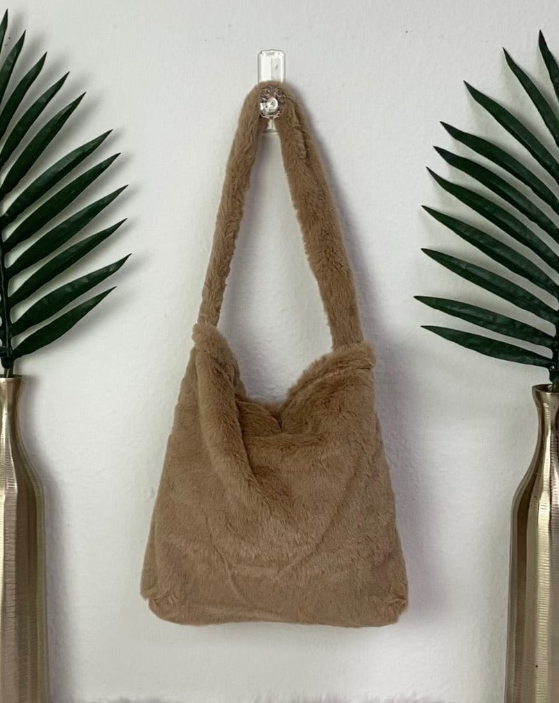 Feel all of the neutral groovy vibes with our adorable fuzzy Teddy tote. Your comfy go-to fashionable accessory that provides the perfect combination of style and functionality. This small, cute purse is made of a soft, fuzzy material and is a great fit for any outfit.