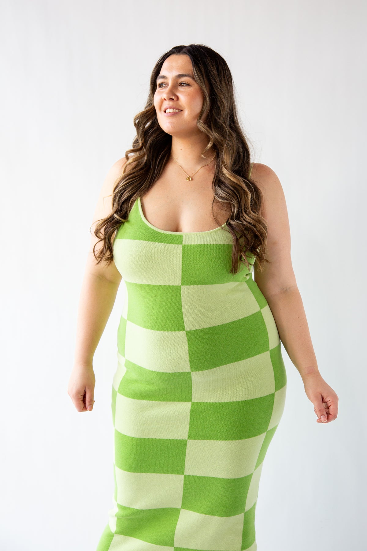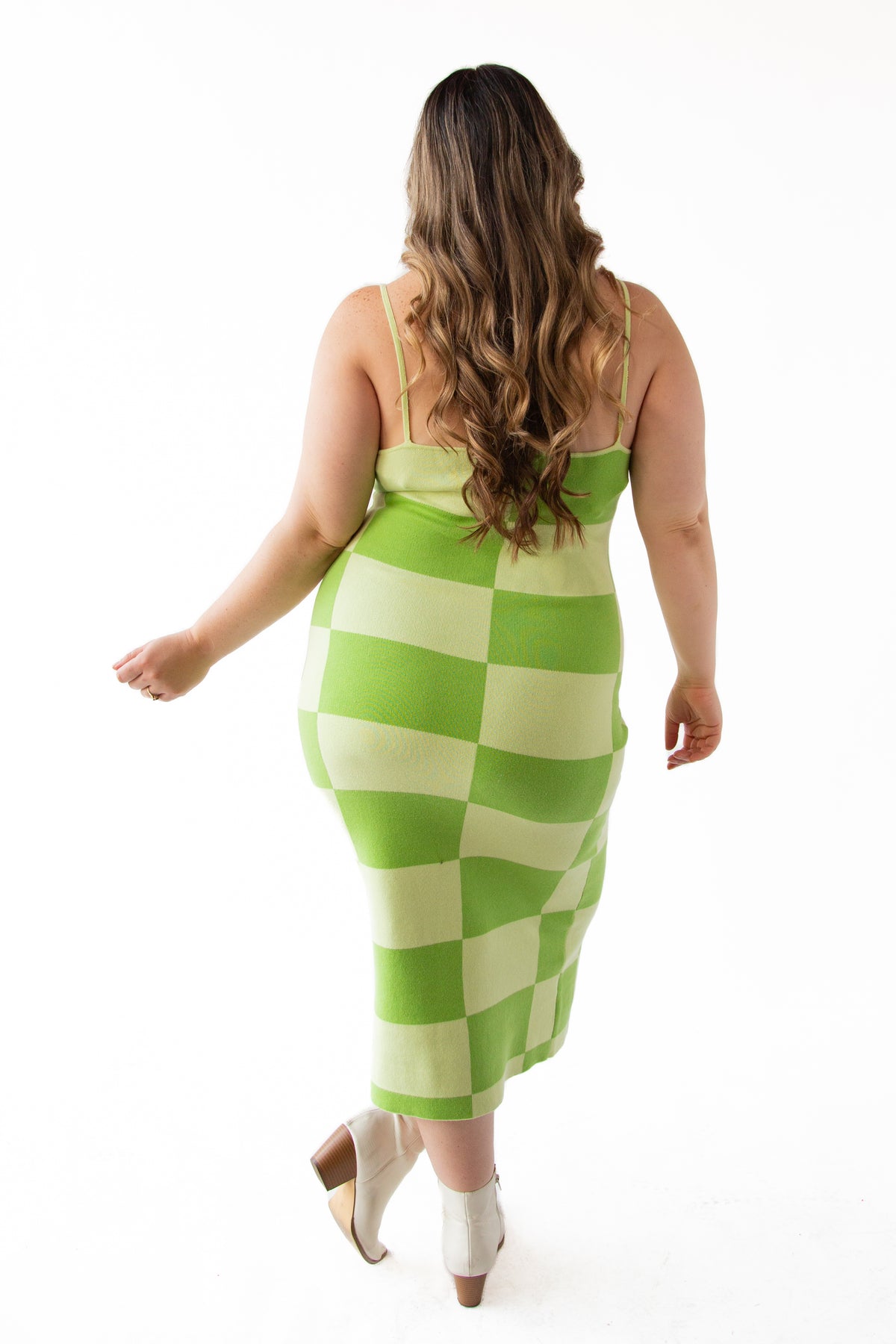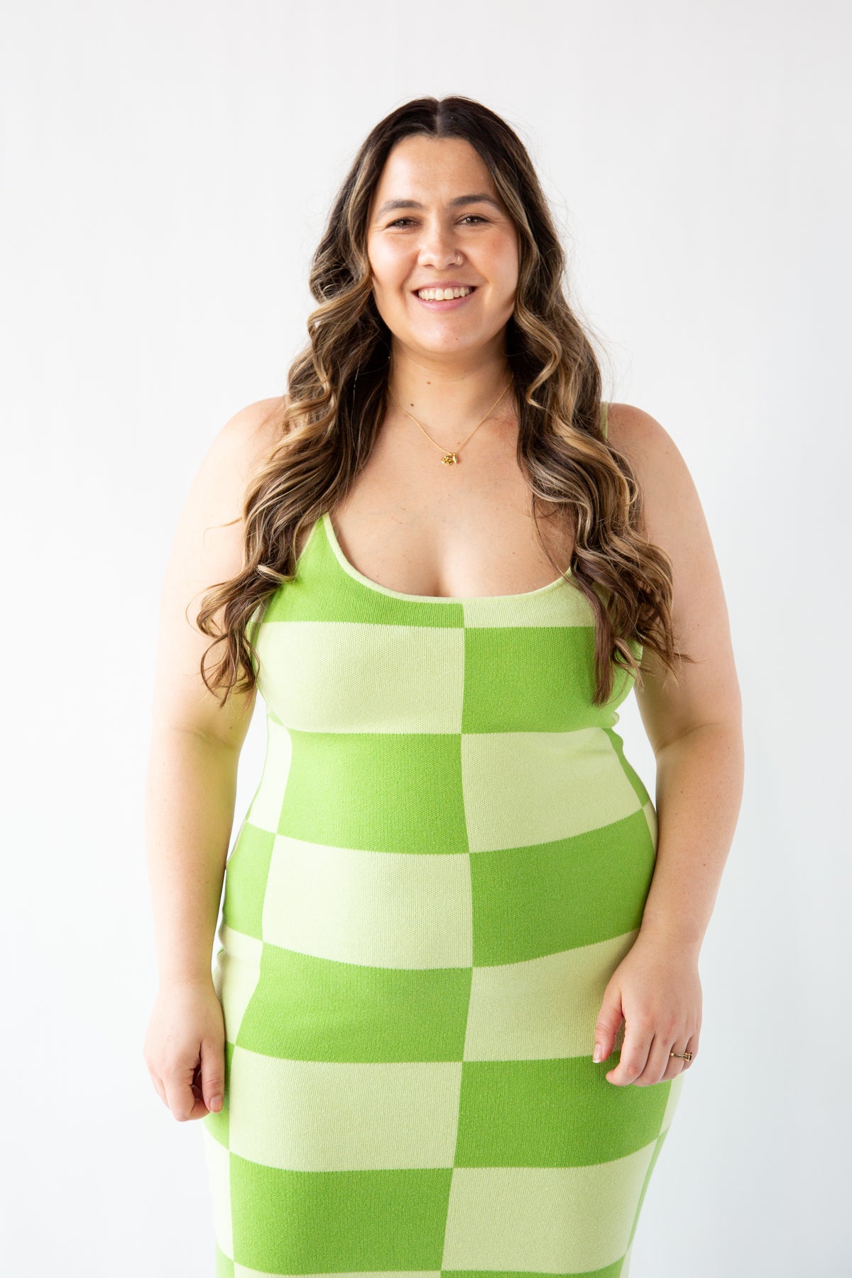 Go from brunch by the beach to seaside date night in this stunning two-toned lime green knitted checkered dress. Made to be as casual or as dressy as the day takes you, this dress is stretchy and soft to make you feel loved in all the right places. Available in sizes XXS-6XL.
