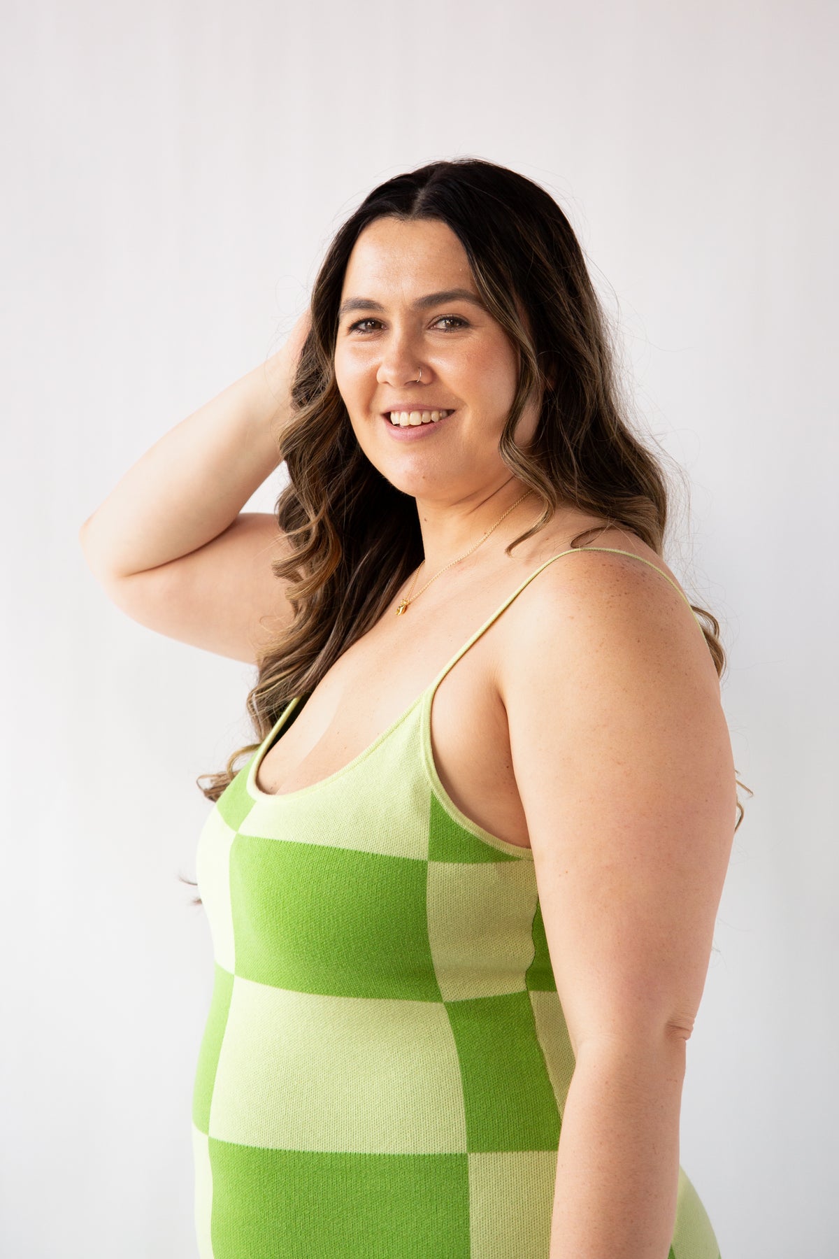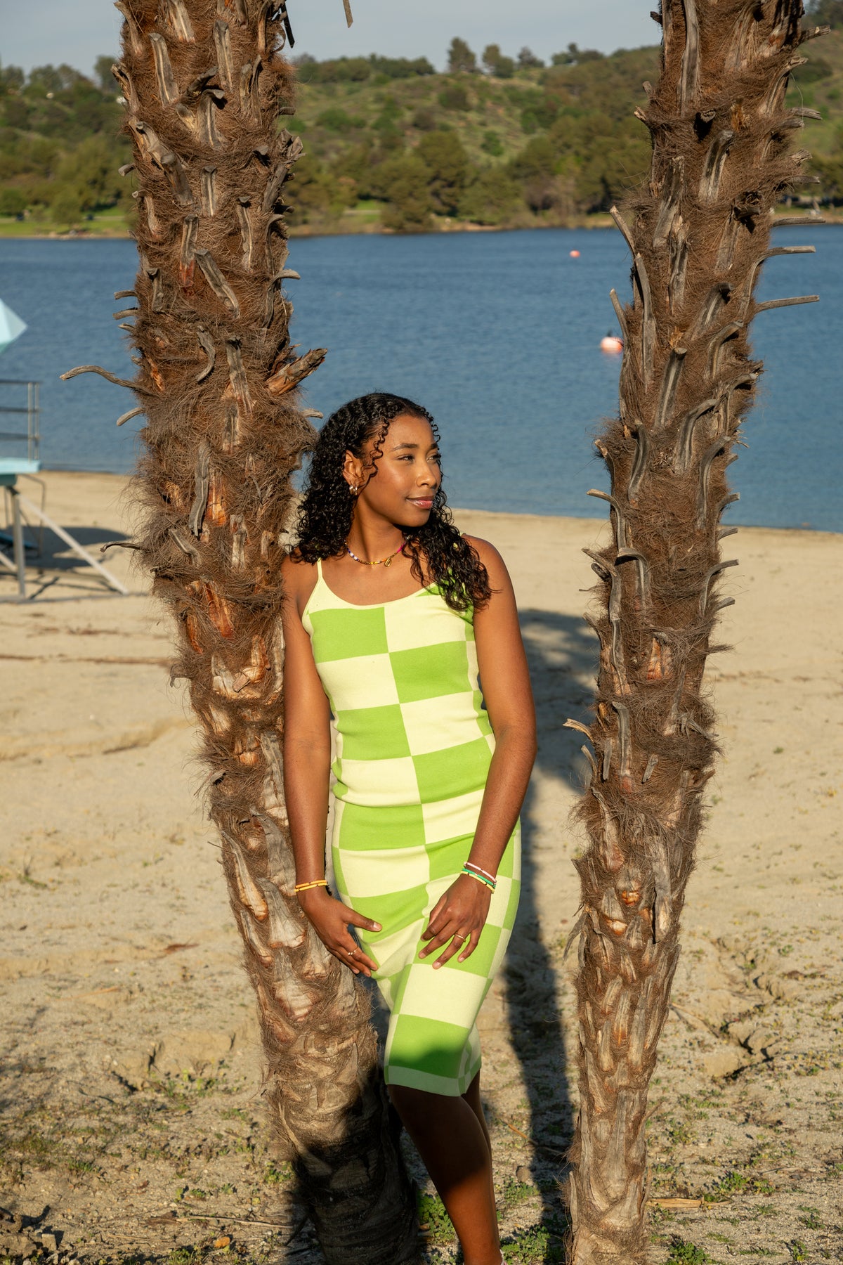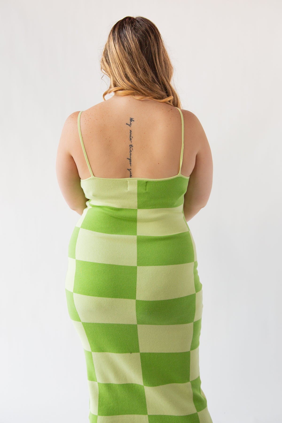 Go from brunch by the beach to seaside date night in this stunning two-toned lime green knitted checkered dress. Made to be as casual or as dressy as the day takes you, this dress is stretchy and soft to make you feel loved in all the right places. Available in sizes XXS-6XL.