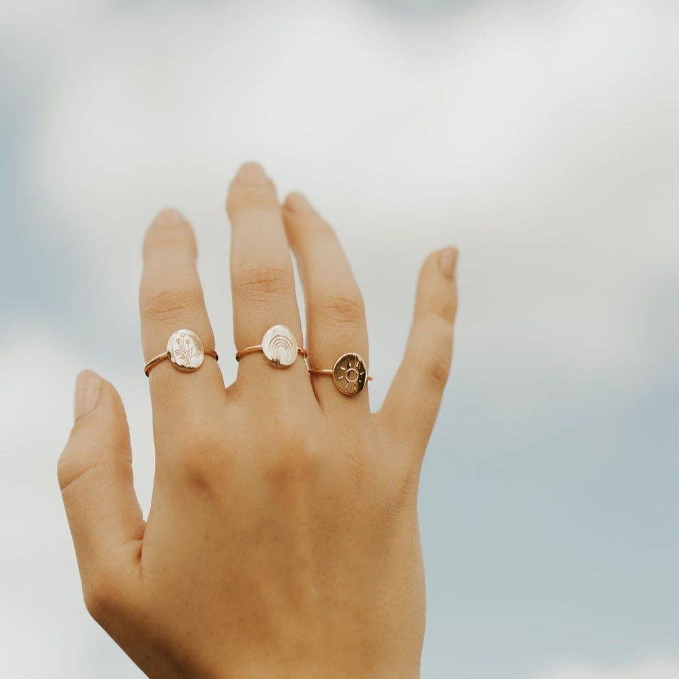 Get some serious sunshine vibes with Mauve Jewelry Co's 18k Gold Plated signet ring, featuring a perfectly engraved sun design. Available in sizes 6-8, this ring will keep you feeling summer ready all year long!