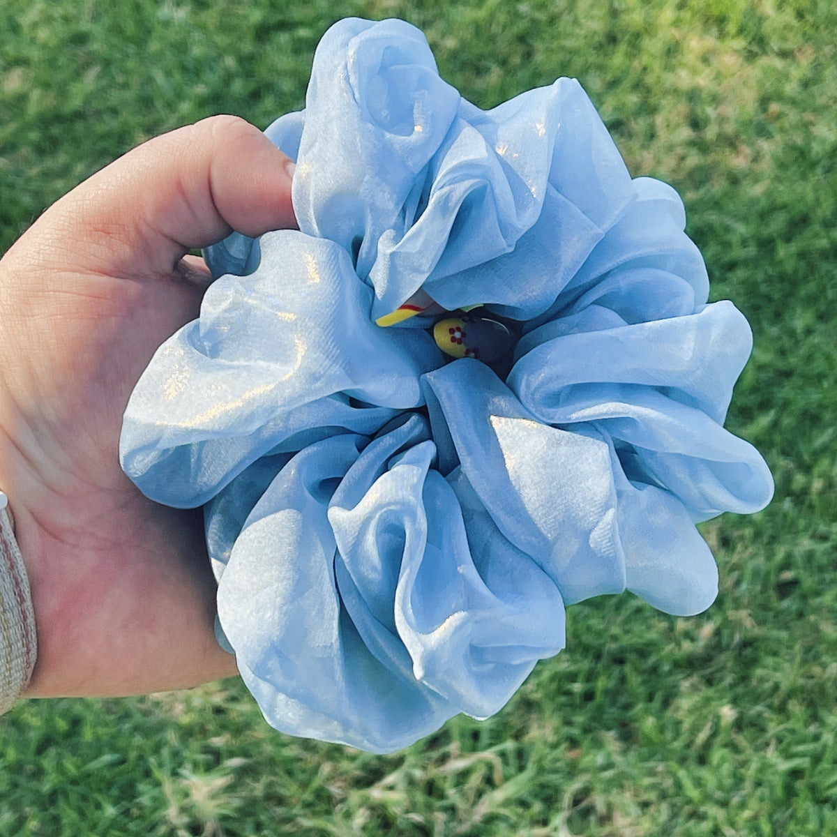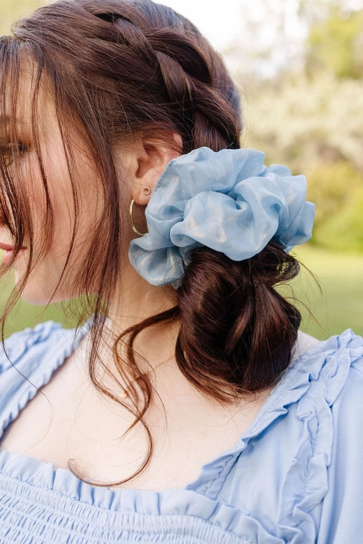 Elevate your everyday hairstyles with our Celeste Jumbo Scrunchie! Crafted from a glistening light blue organza, this scrunchie is the ultimate hair accessory. Add some flair to your messy buns or ponytails with this jumbo-sized delight!