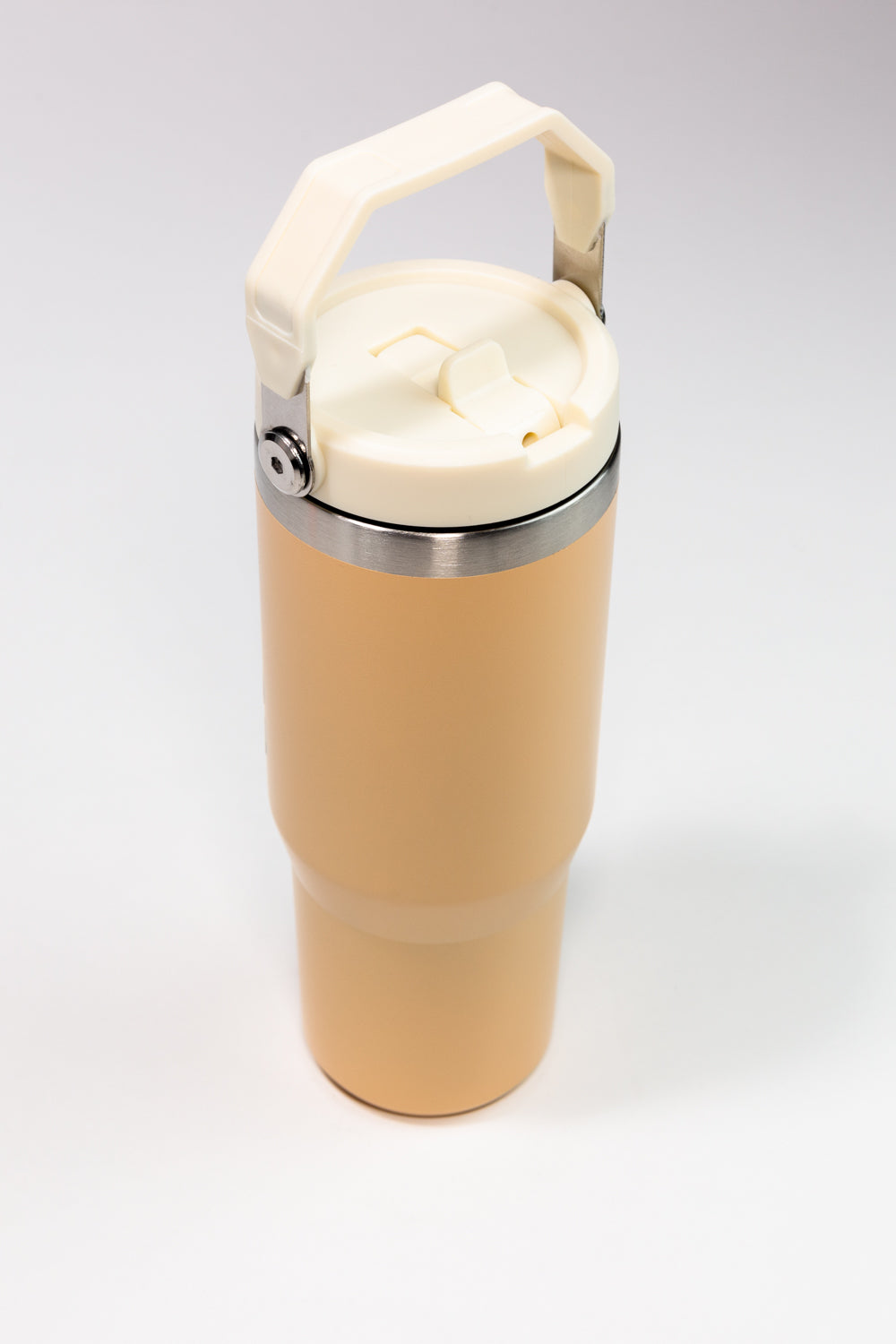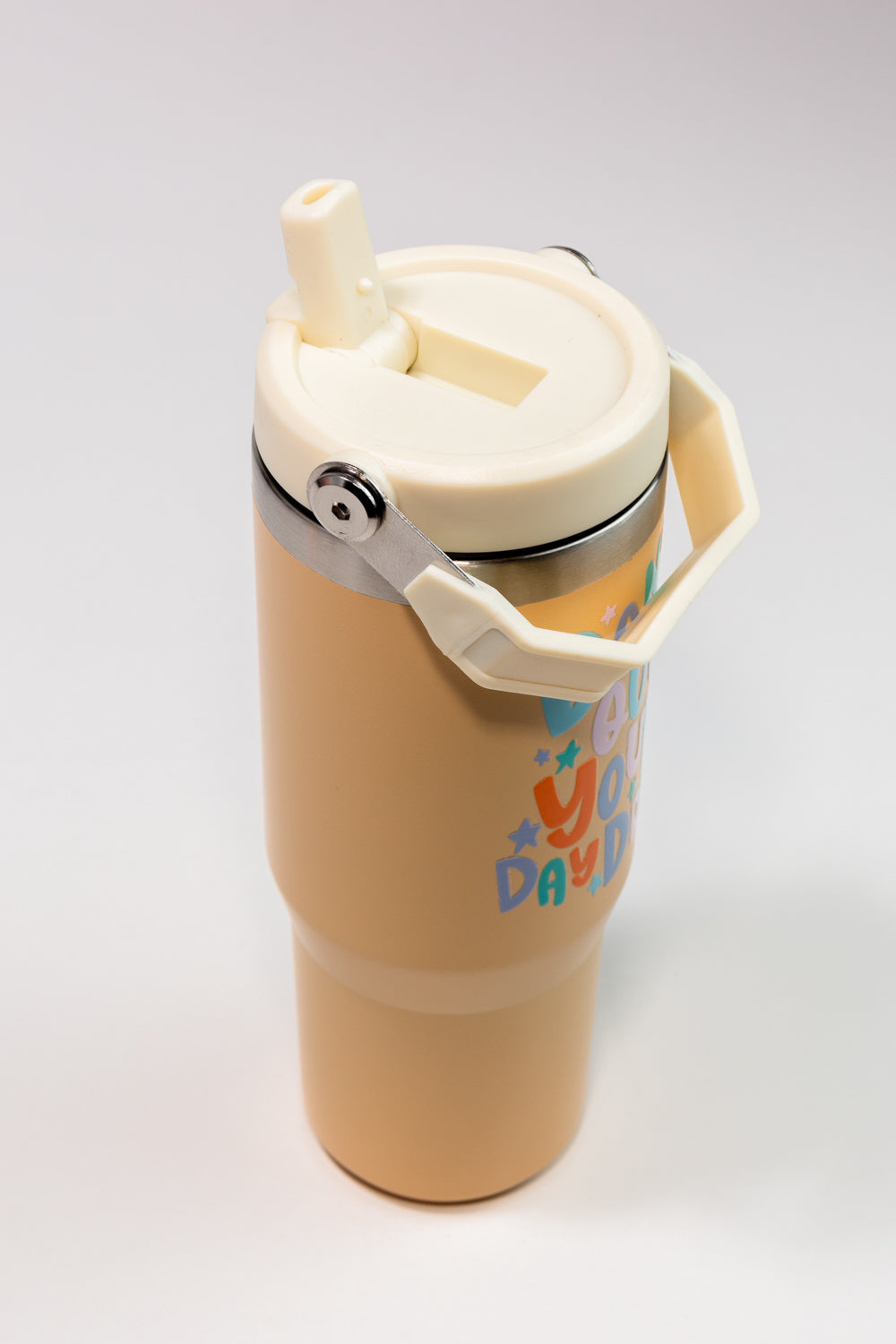 Don't Quit Your Day Dream Beige 30oz Ice Tumbler featuring a groovy retro vibe pastel saying. Keep your drinks icy cool on the go with our 30 oz Ice Tumbler! The double-walled tumbler keeps them chilled, while the built-in handle adds some extra pizzazz. Plus, the trendy colors, inspirational Don't Quit Your Day Dream quote, and cup holder compatibility make it the perfect accessory for any adventure. (Who doesn't want frosty refreshment?).