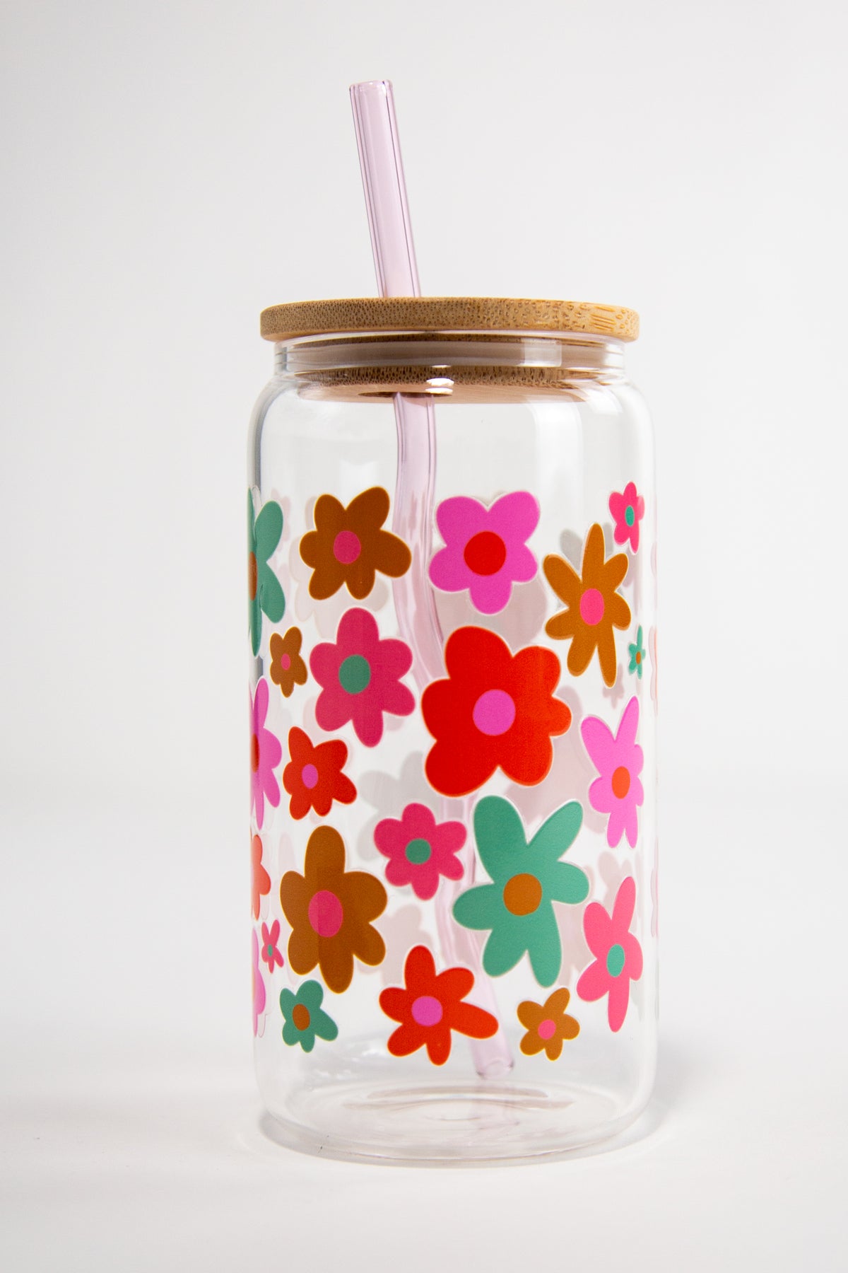 Groovy Floral Glass Can Cup