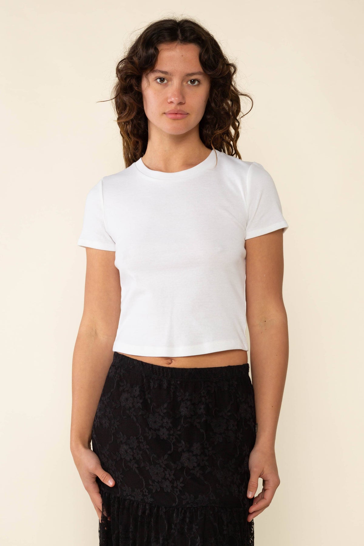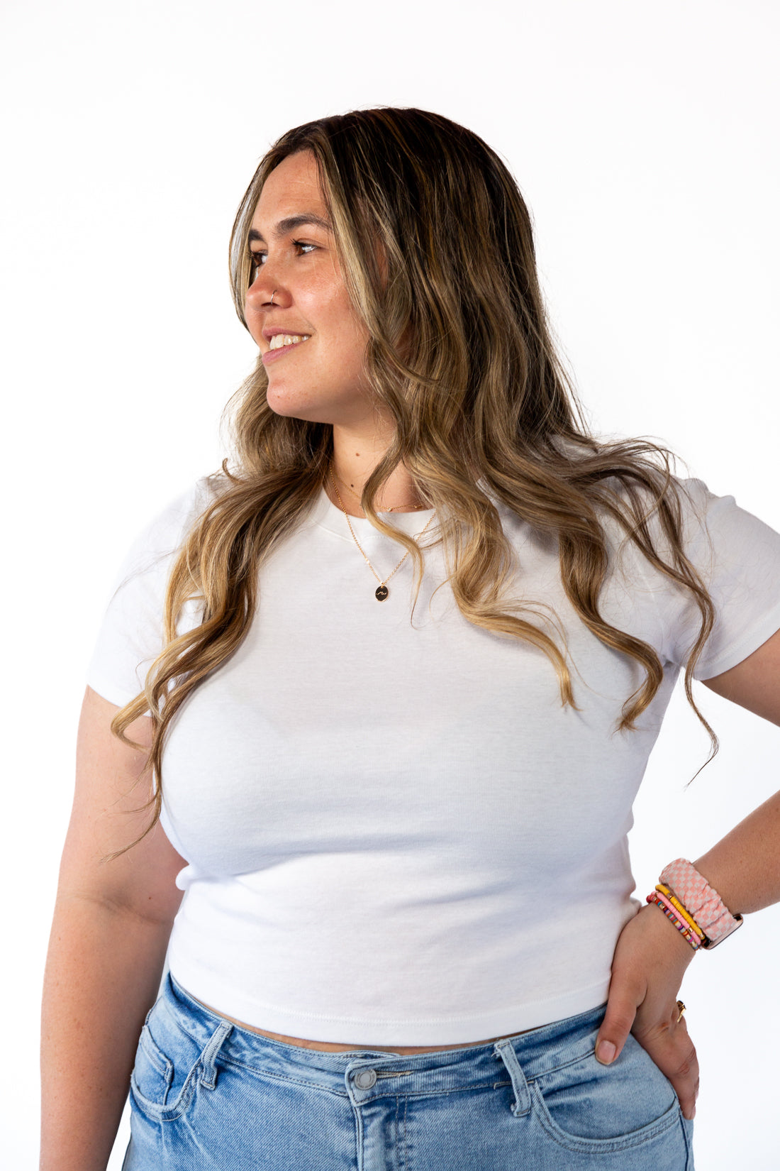 A high quality, Los Angeles made (cut, sewn, everything) cotton cropped micro ribbed baby tee. A wardrobe essential is soft and breathable made from high quality cotton. A flattering fit on any body type, this cotton baby tee will be your go to wardrobe staple. Made to last unlike other department brands, which makes it a necessity for capsule wardrobe.