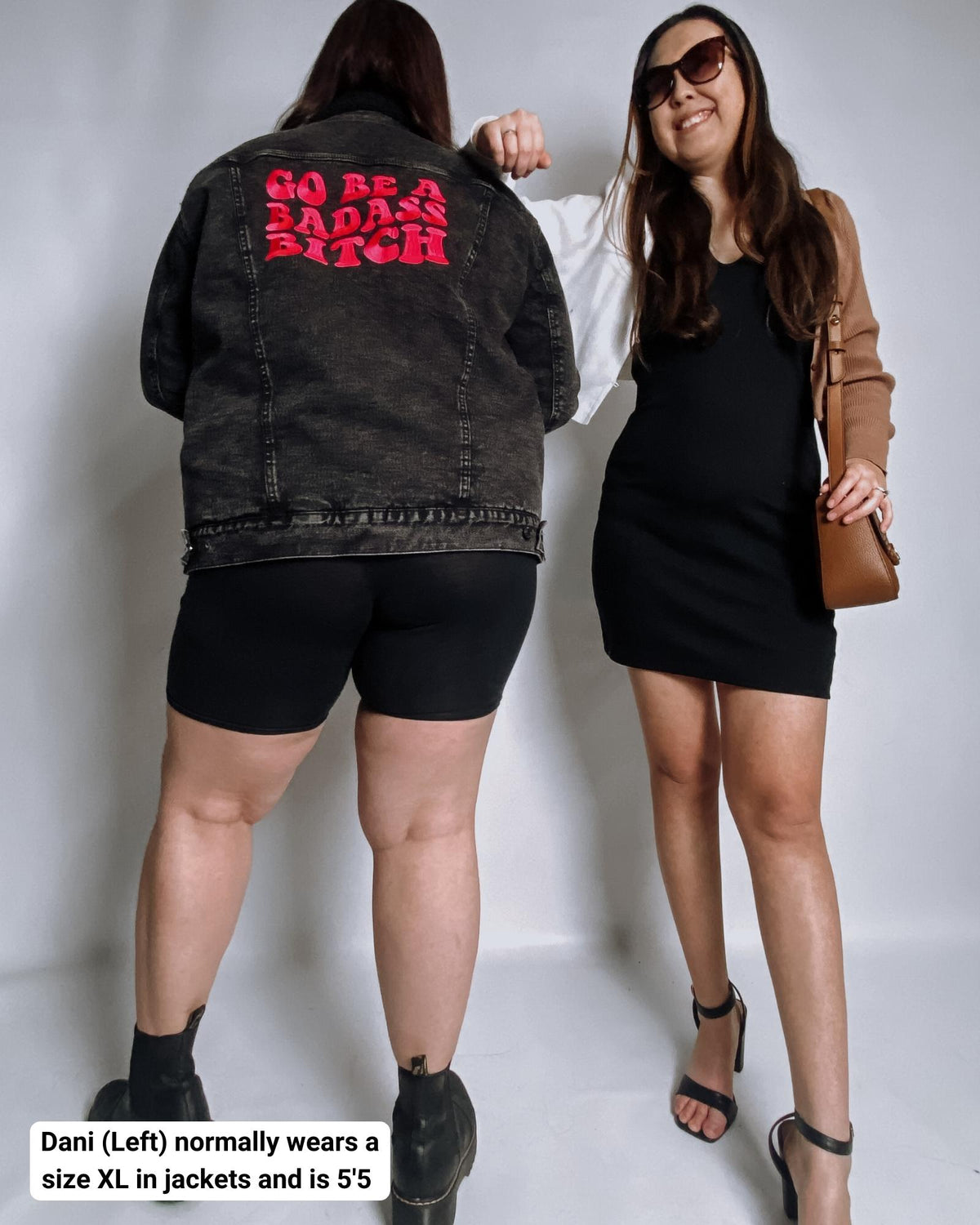 • Design is a hot pink embroidered "Go Be A Badass Bitch" on the center back and a small flower embroider detail on the front chest.