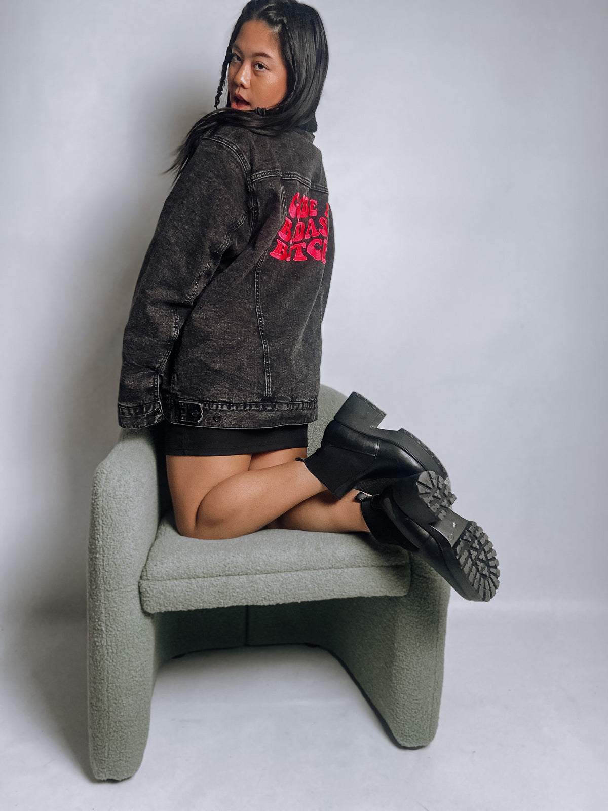 Go Be A Badass Bitch Denim Sherpa Jacket