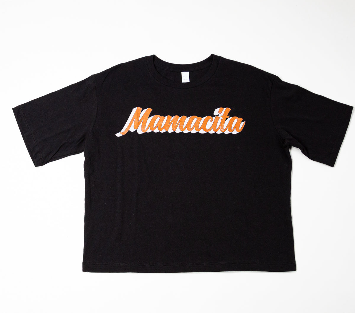 Hey mamacita we see you. Our Mamacita tee is made from 4.3-ounce, 100% combed ring spun cotton in a black color. It's super soft with some a little stretch and a cropped, straight boxy sillohuette. The sleeve length is longer and hits right above the elbow. This design features an orange-reddish with pink distressed retro font. All of our graphic tees are made to order, so please allow up to 1 week for production.