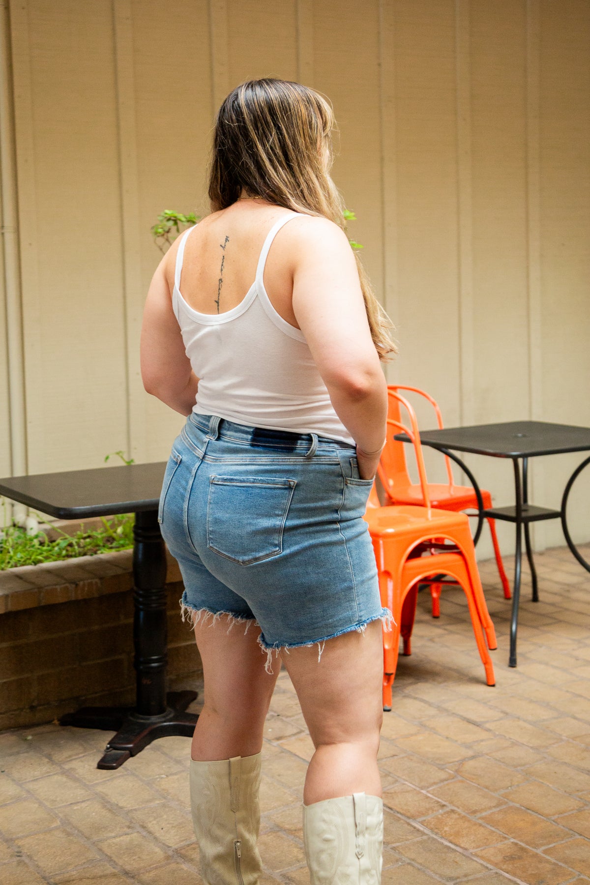 Jeans that are comfortable, stretchy, sturdy, and long enough? Sign us up! This high rise midi mom jean shorts are the perfect combo of everything we love wrapped in to one great pair of jean shorts. Comfortable on the belly, but still offers tummy support featuring a raw hem. The 6" inch inseam gives a little more length as well. These high rise midi mom jean shorts are perfect for everyday use.