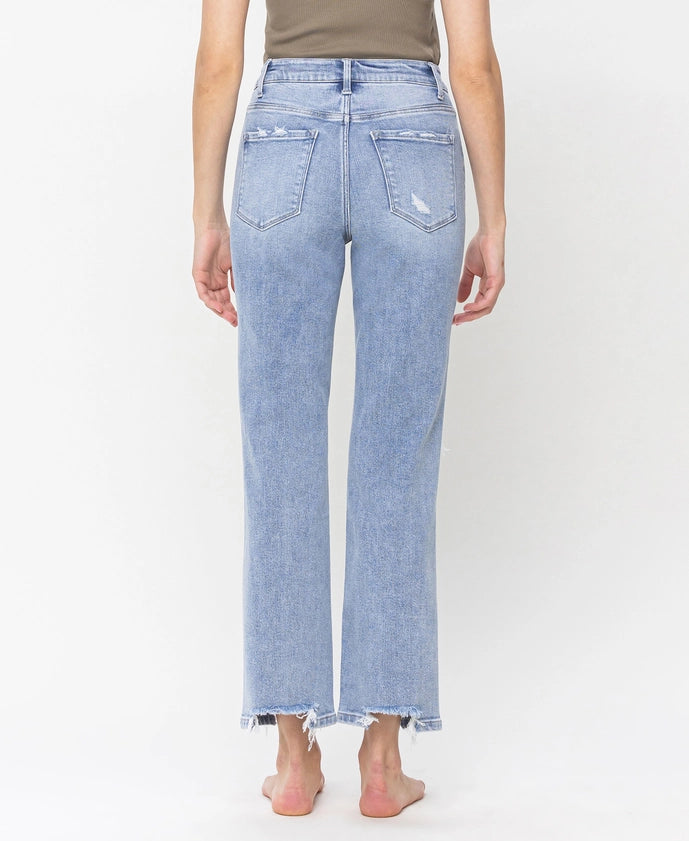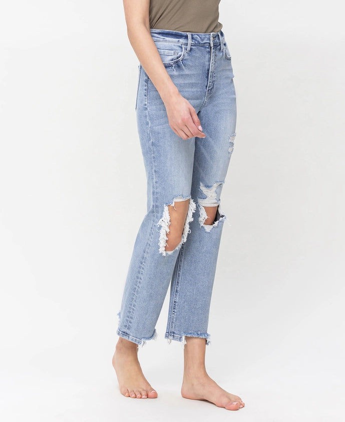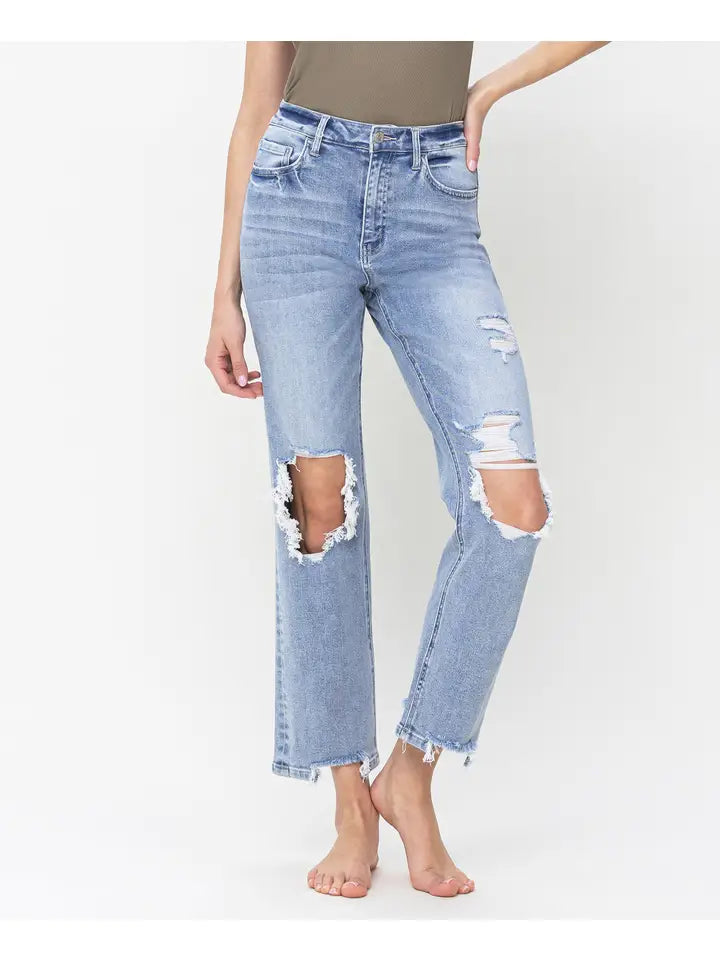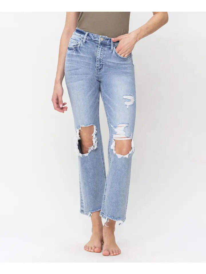 Revamp your wardrobe with these destroyed crop jeans from Vervet Denim. They feature a high rise, stretchy fabric for all-day comfort, and a trendy wash that pairs perfectly with any graphic tee. The hem of the jeans have a destroyed and distressed edge.